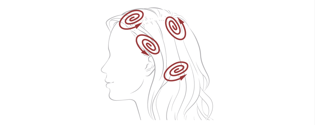 ブラシを軽く頭皮に押しあて、小さな円を描くように動かします。