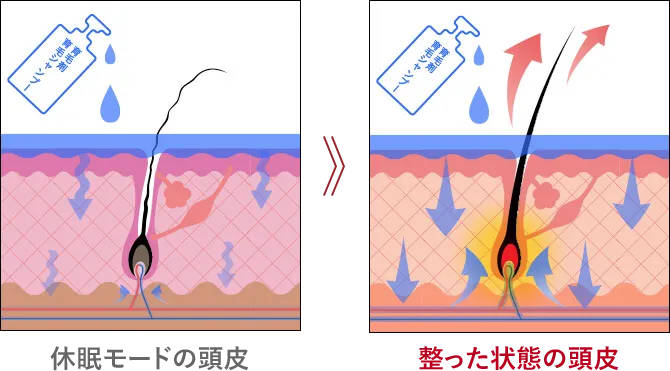 温熱効果で育毛エッセンスの有効成分が頭皮全体に行き渡ります。