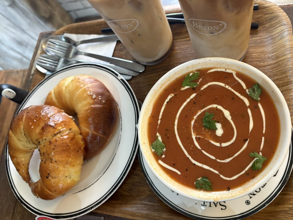 ふわっとした塩パンと、濃厚なのに爽やかなトマトスープに大感動!